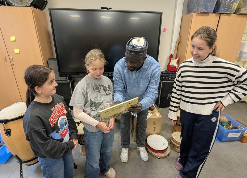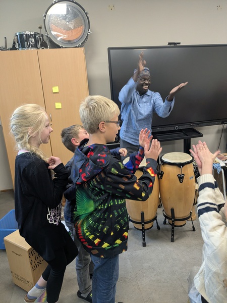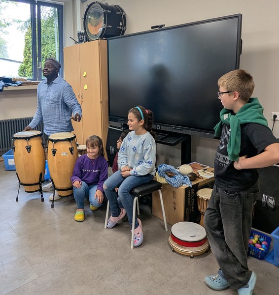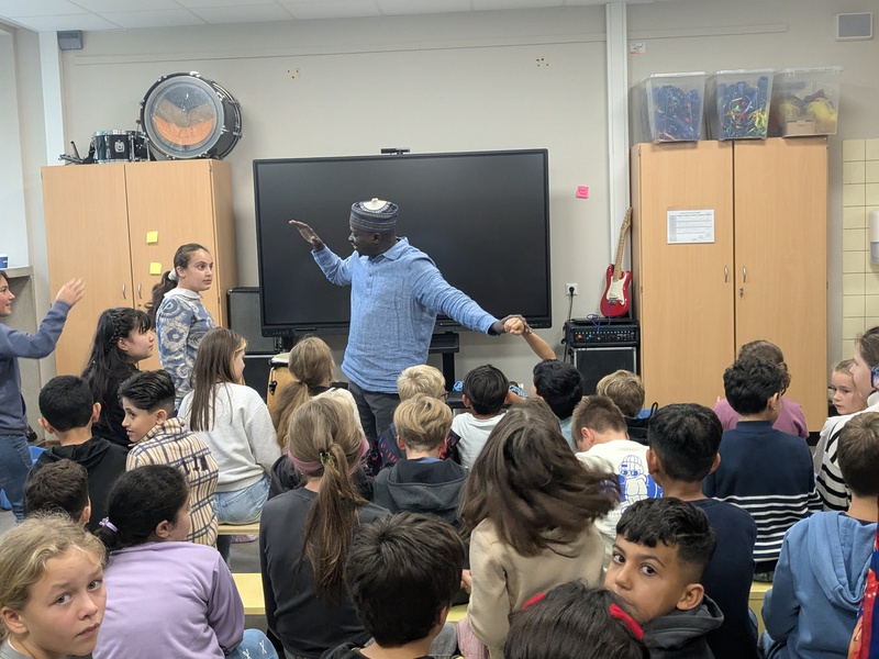 Mit seiner humorvollen ansteckendende Art erzählte er uns von seinem Heimatland Senegal, trommelte, sang mit uns und erzählte uns spannende Geschichte.