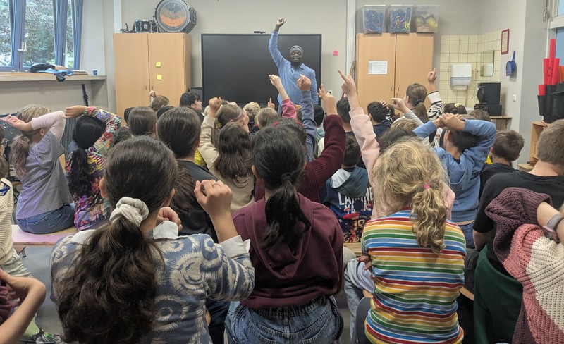 Mit freundlicher Unterstützung vom Friedrich Bödecker Kreis Saarland konnten die Klassenstufen 3 und 4 am 26.9.25 den bekannten Autor, Musiker, Tänzer und