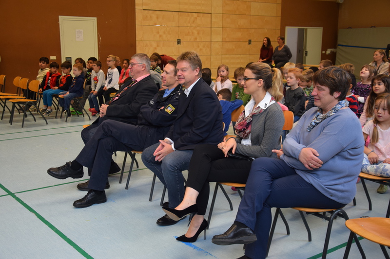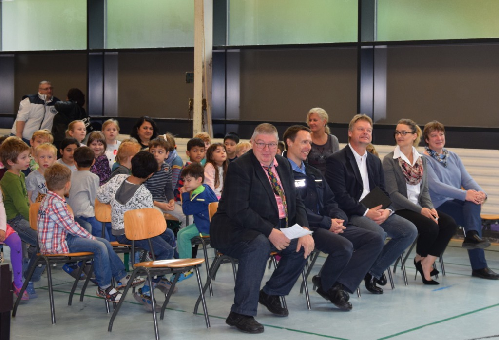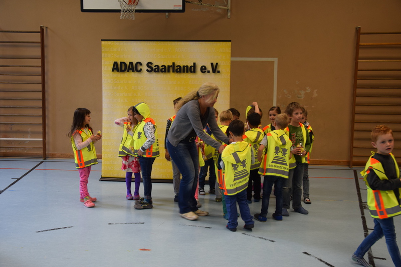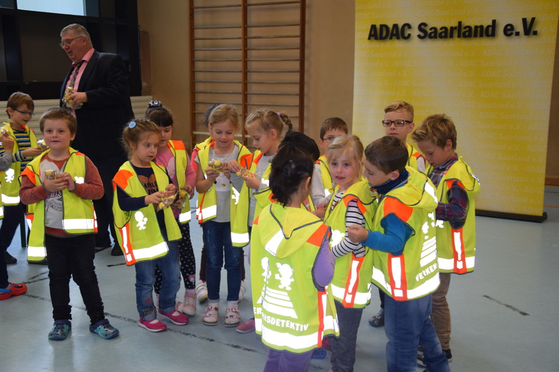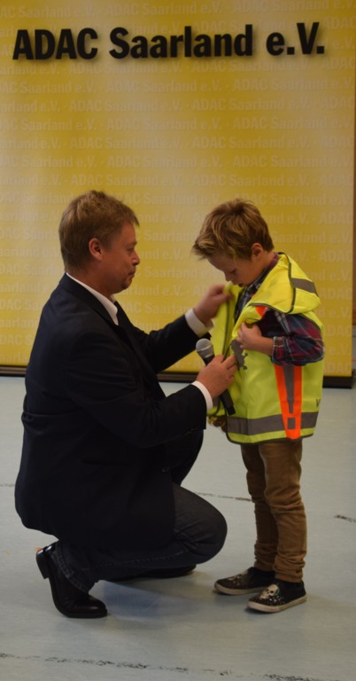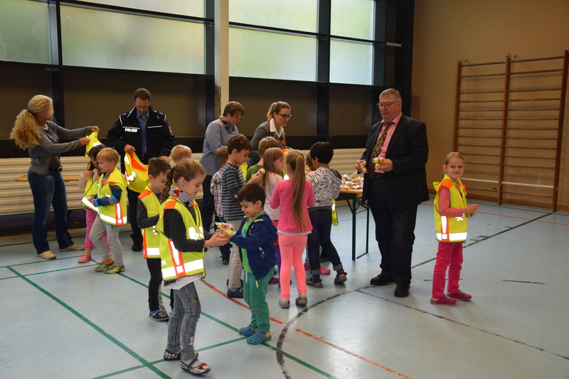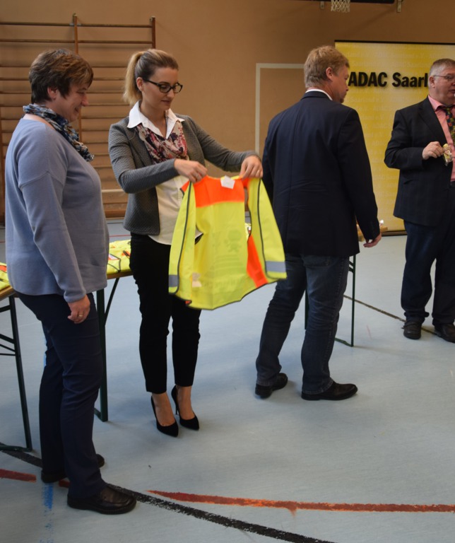 Am 28.09. übergaben Vertreter von ADAC und Polizei persönlich die Sicherheitswesten an die Erstklässer der FGTS Eschberg.