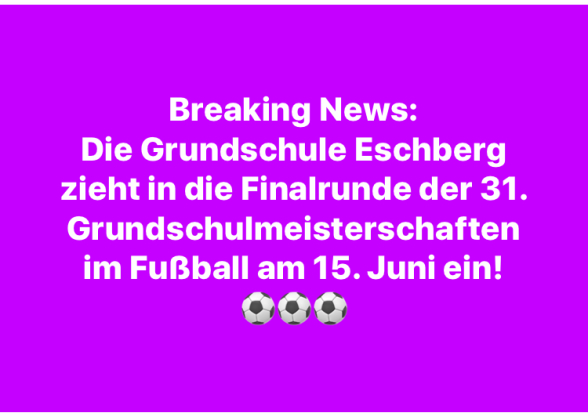 Die Grundschule Eschberg ist dieses Jahr die veranstaltende Schule für die Vorrundenspiele der Grundschulmeisterschaft. Es treten insgesamt acht Mannschaften aus sechs verschiedenen Schulen