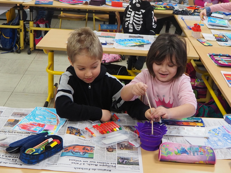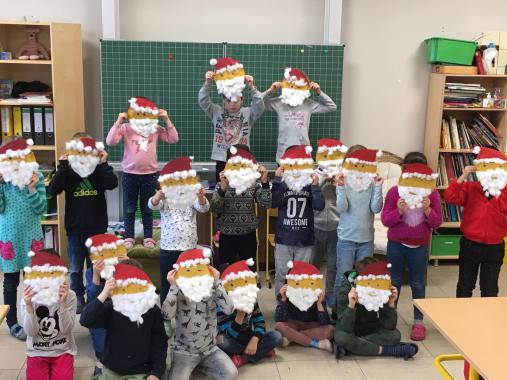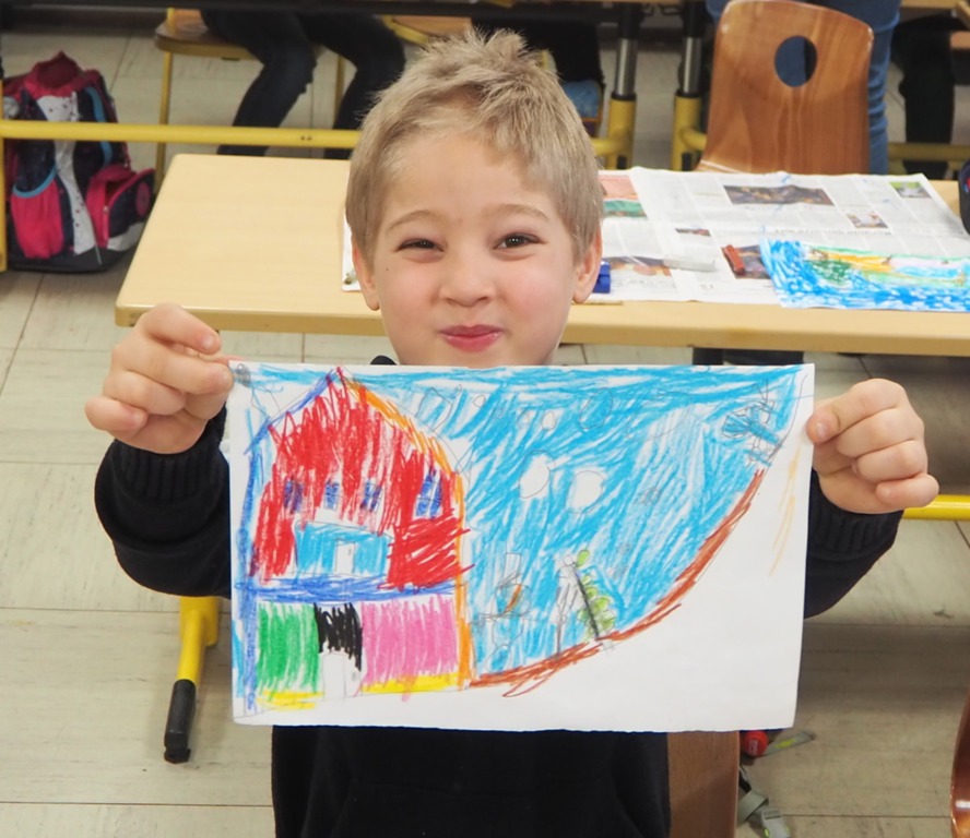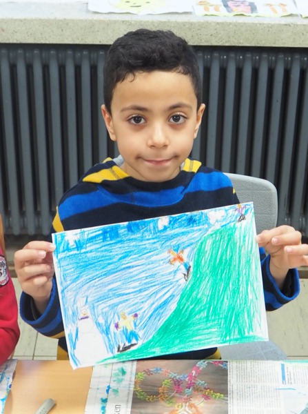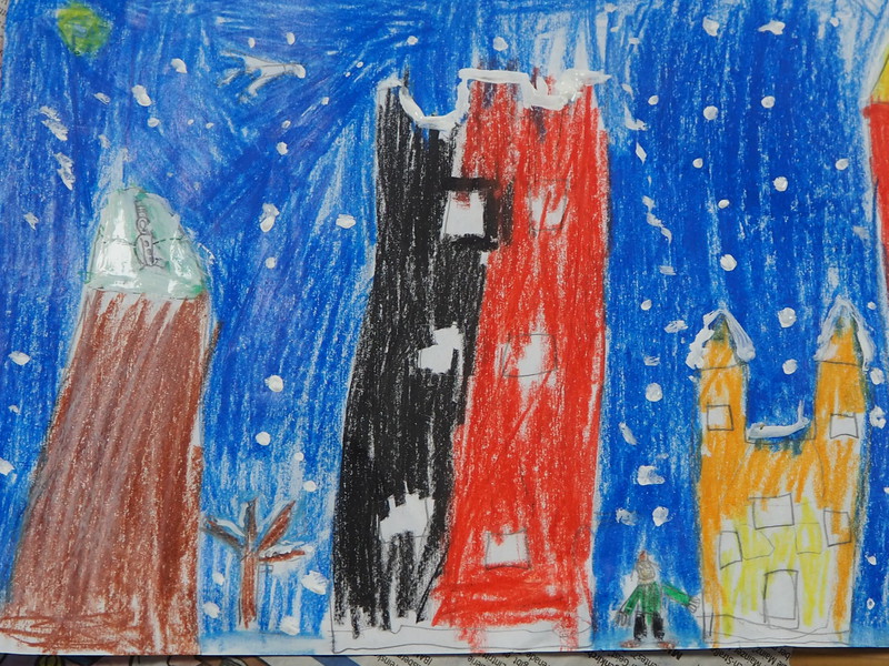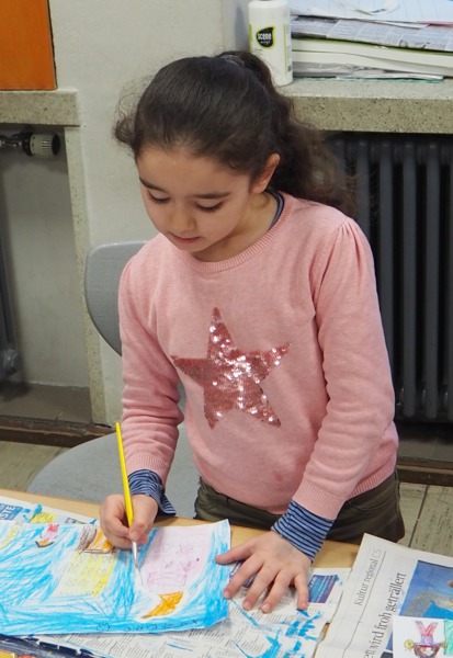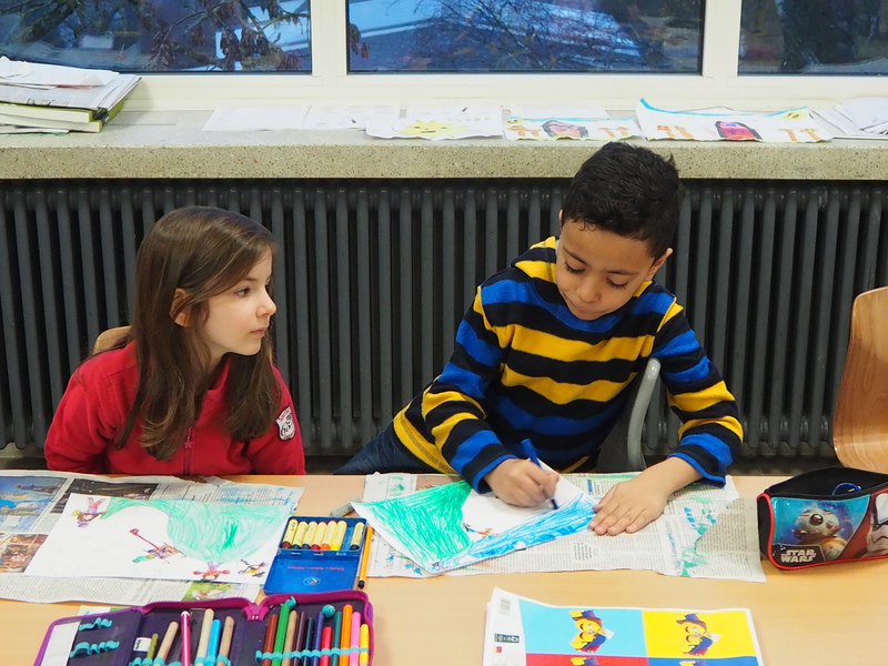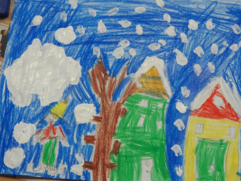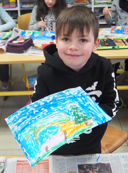 Die Klasse 1.2 erschuf mit der Künstlerin Frau Vogel sehr kreativ eine Winterlandschaft....