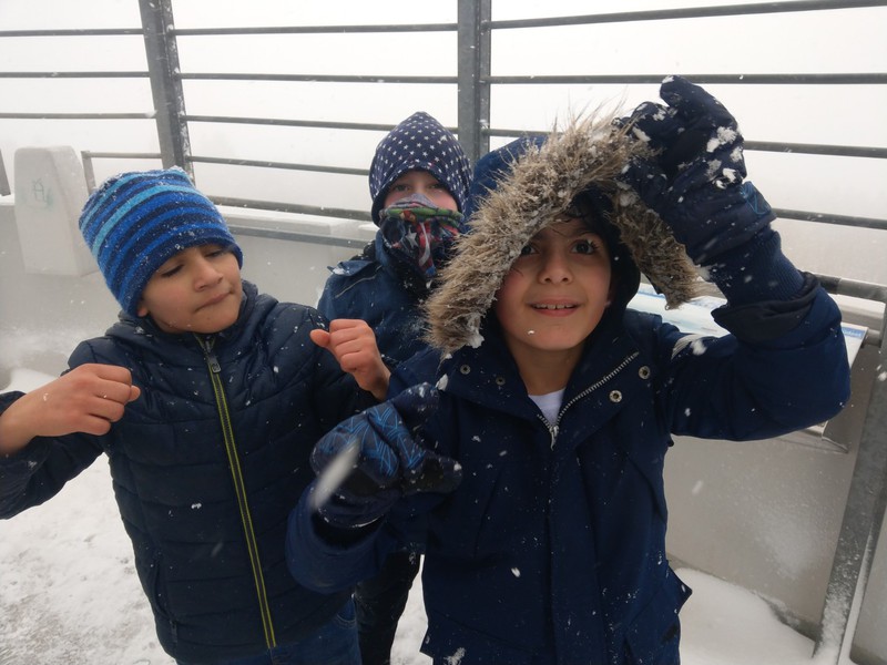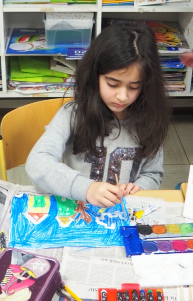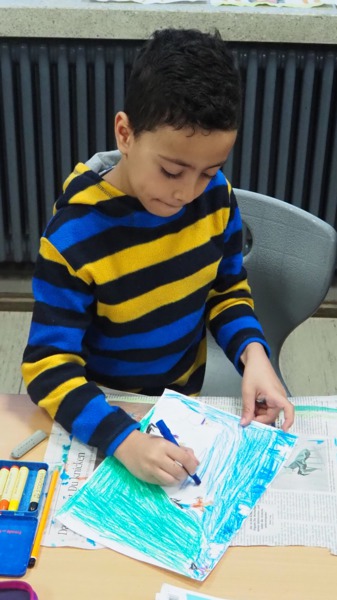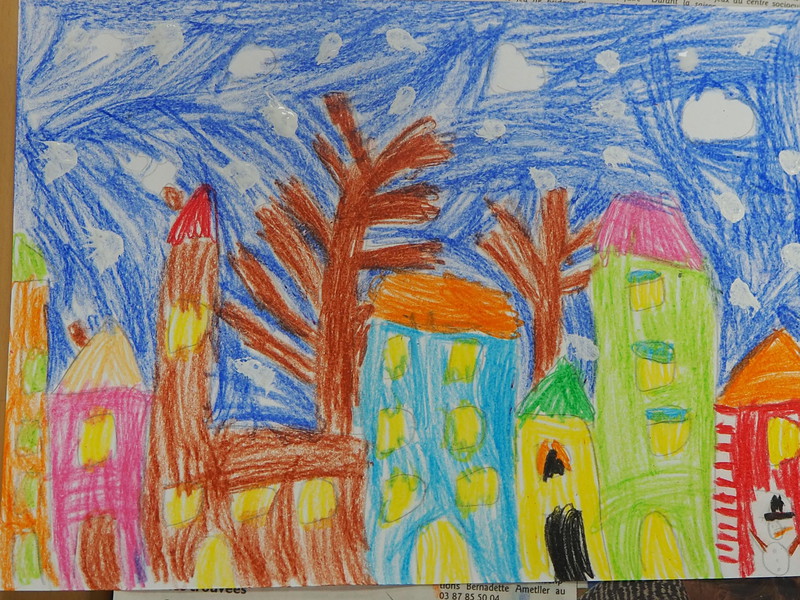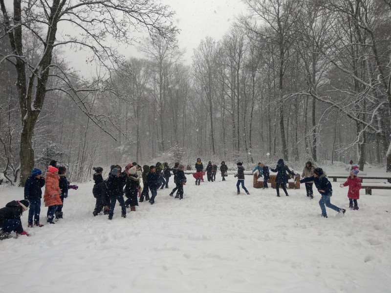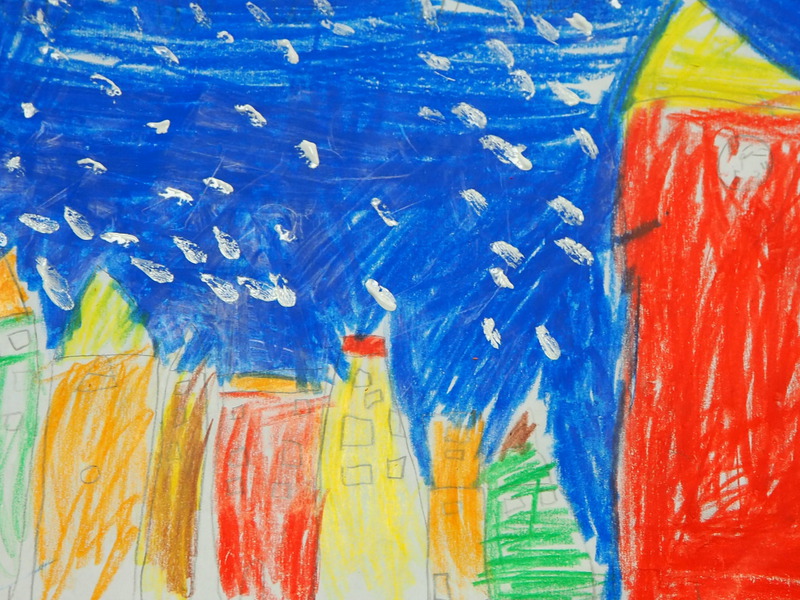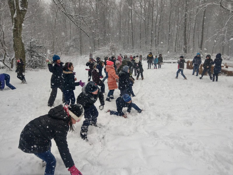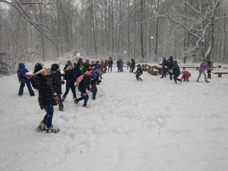 Die Klasse 1.2 erschuf mit der Künstlerin Frau Vogel sehr kreativ eine Winterlandschaft....