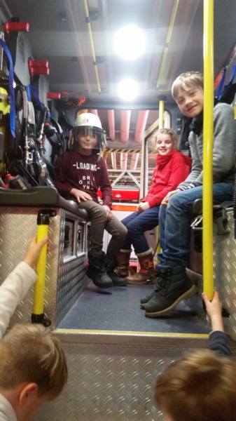 Die Klassenstufe 3 besuchte die Feuerwehr und die Klasse 2.1 bakam einen Einblick in echte Polizeiarbeit.