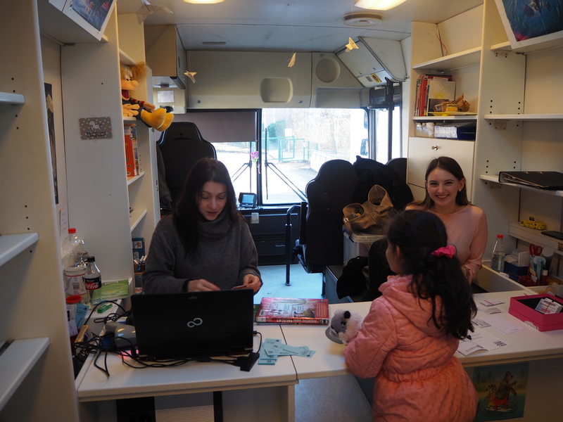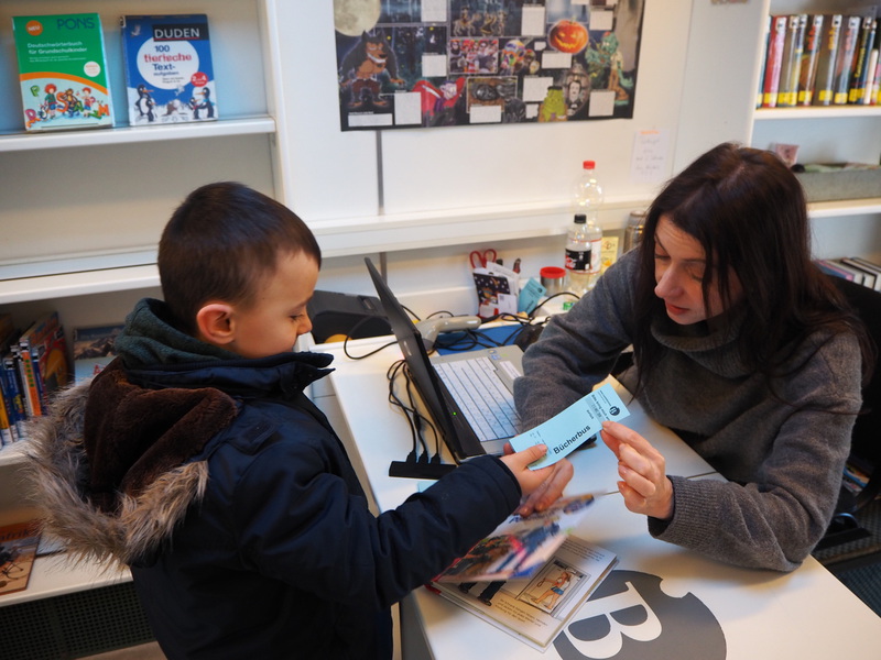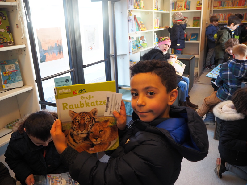 Der Bücherbus ist eine tolle Sache. Er kommt uns regelmäßig besuchen und wir können gemütlich auf unserem Schulhof im Bücherbus in Büchern stöbern...