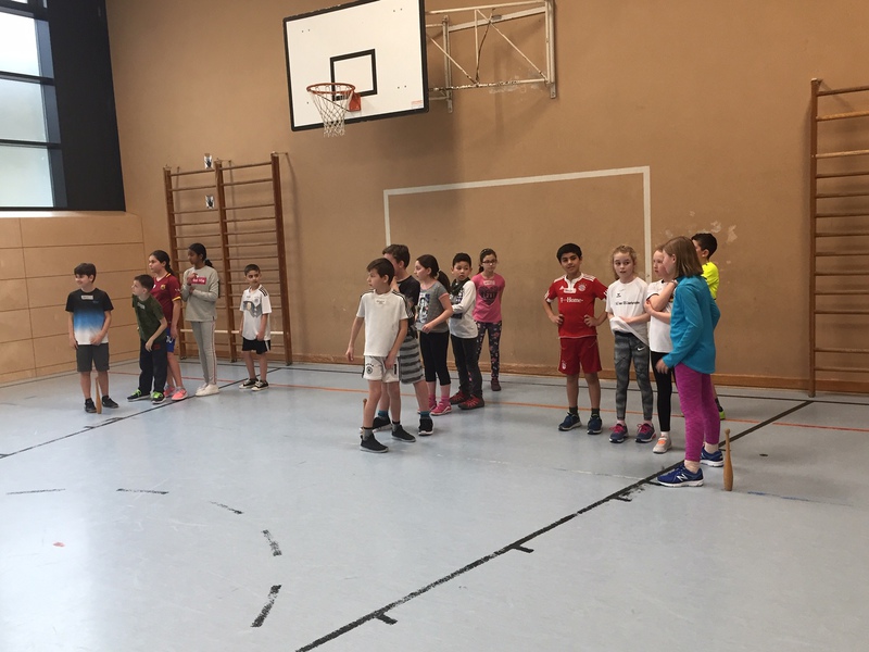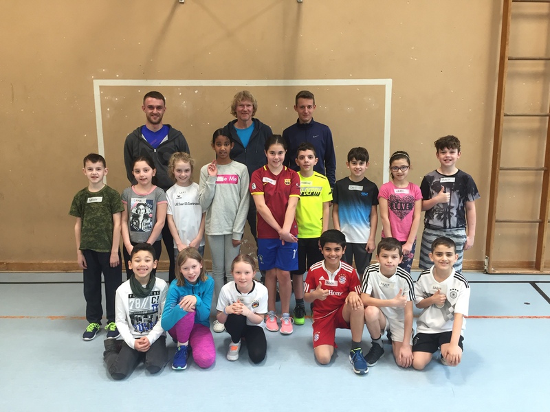 Sven Rave, Schulleiter der Grundschule, war sehr erfreut über die große Zahl der interessierten Mädchen und Jungen und konnte dem Trainerteam "Blau-Weiß" 36 Teilnehmer übergeben.In zwei Gruppen führte das Trainerteam mit Bill Jenkins, Marc Gitzinger und Christopfer Diehl in die Sportart ein.