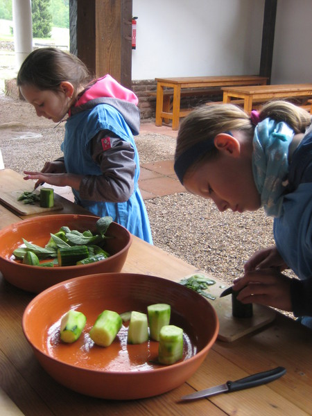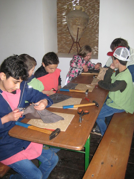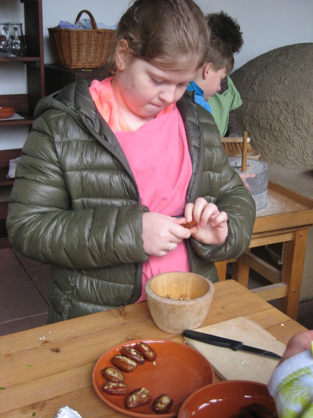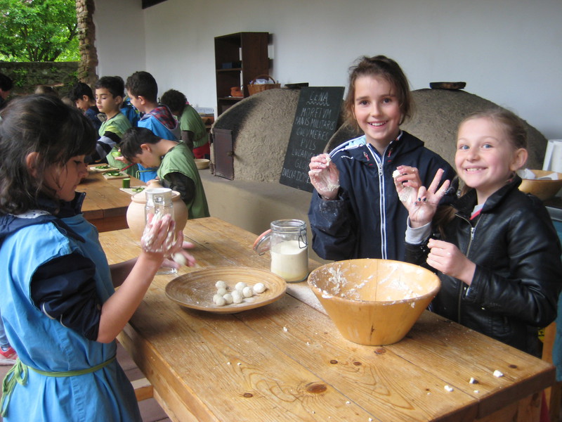 Am 28. Mai begab sich die Klasse 4.3 in die Römerzeit. Nach einer Führung durch das Gelände des Römermuseums in Schwarzenacker haben alle zusammen nach römischen Rezepten gekocht. Am Ende gab es für alle ein 6-gängiges Menü, von der Vorspeise bis zum Nachtisch. Gut gestärkt ging es dann an die Arbeit. Lederbeutel wurden hergestellt so wie es die römischen Handwerker taten. Alle waren in Aktion und haben gar nicht gemerkt, dass es fast den ganzen Tag geregnet hat.